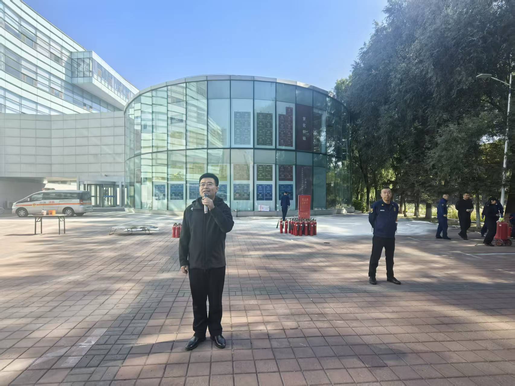 根据学院年度安全消防工作计划,10月10日上午,英国威廉希尔公司官网、无机合成与制备化学全国重点实验室、超分子结构与材料全国重点实验室联合保卫处组织教职工、研究生在无机-超分子楼举办了疏散逃生演练、消防器材使用培训活动。英国威廉希尔公司官网院长李乙、副院长王洋、行政副院长张贺,以及学院师生代表300余人参加了本次活动。