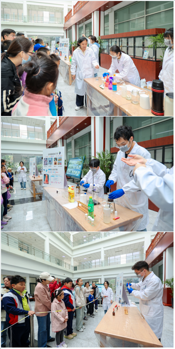一系列趣味十足的“神奇化学实验秀”吸引了众多参观者的驻足。“大象牙膏”喷涌的彩色泡沫、“酚酞显色”再现隐形的字迹、“神奇变色与变身”里溶液的缤纷转换……一个个直观有趣的实验,将抽象的化学原理转化为可感可触的奇妙现象,引领观众沉浸式领略化学的魅力。