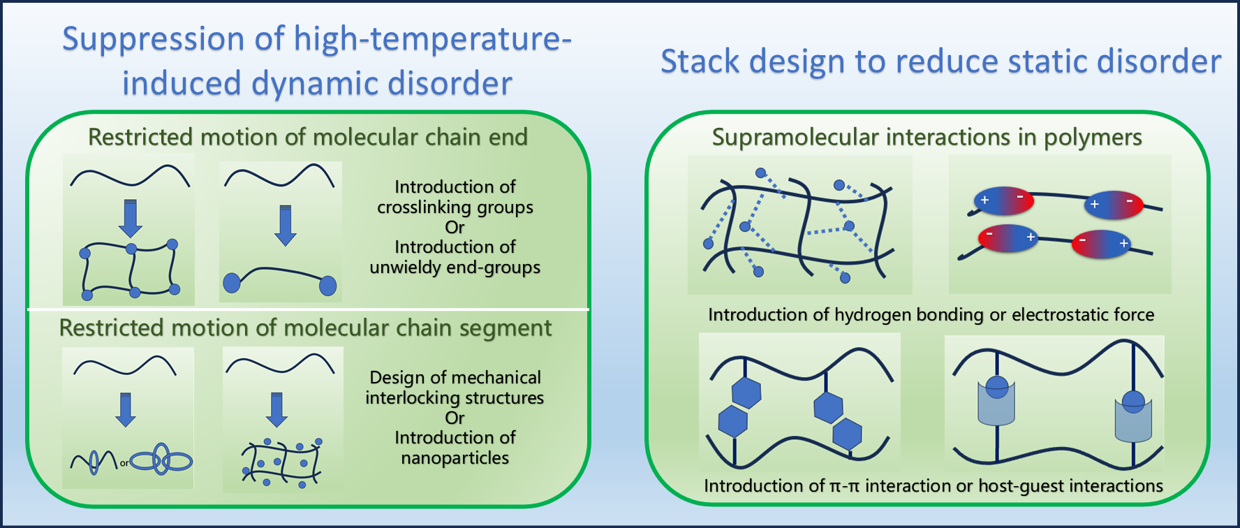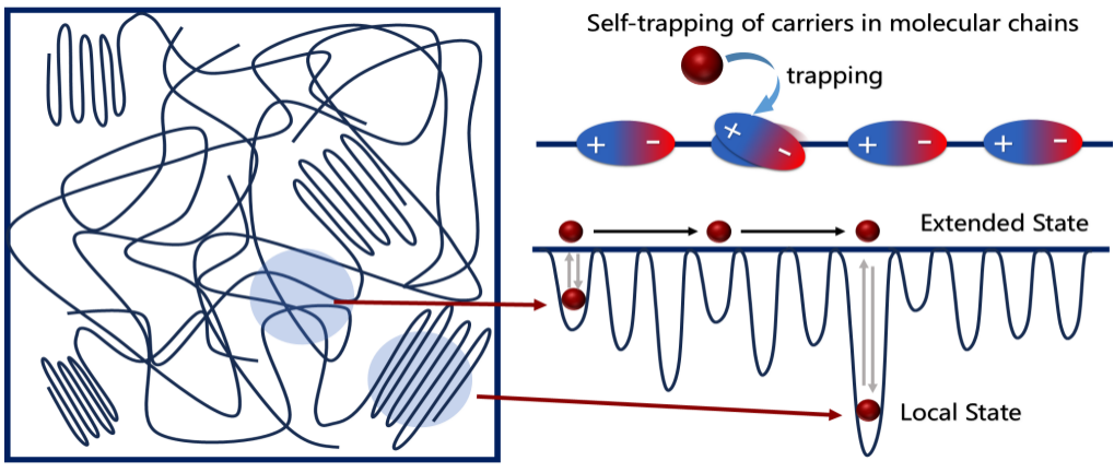 文章首次系统地将高温下导致电容器性能衰退的根源,归结于由链段热振动活化(动态无序)和本征聚集态结构失稳(静态无序)所共同驱动的声子辅助电子跃迁效应。