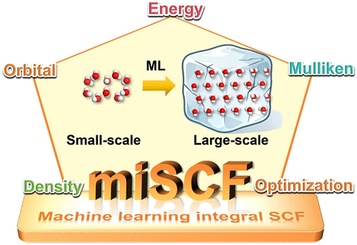 纵所周知,自洽场迭代(SCF)是电子结构计算中最为关键、也是最为耗时的一步。该过程涉及众多积分,如重叠积分、单电子积分和双电子积分,其中双电子积分的计算量为N4(N为基函数数目)。虽然通过双电子积分本身具有八重对称性,可以减少一定量的积分数,但随着基函数的增加,双电子积分的计算量仍然呈现指数增长,为求解Roothaan方程带来了巨大困难。为了解决这一难题,我们提出了一种机器学习积分自洽场方法—miSCF并通过它来构建Fock矩阵。根据