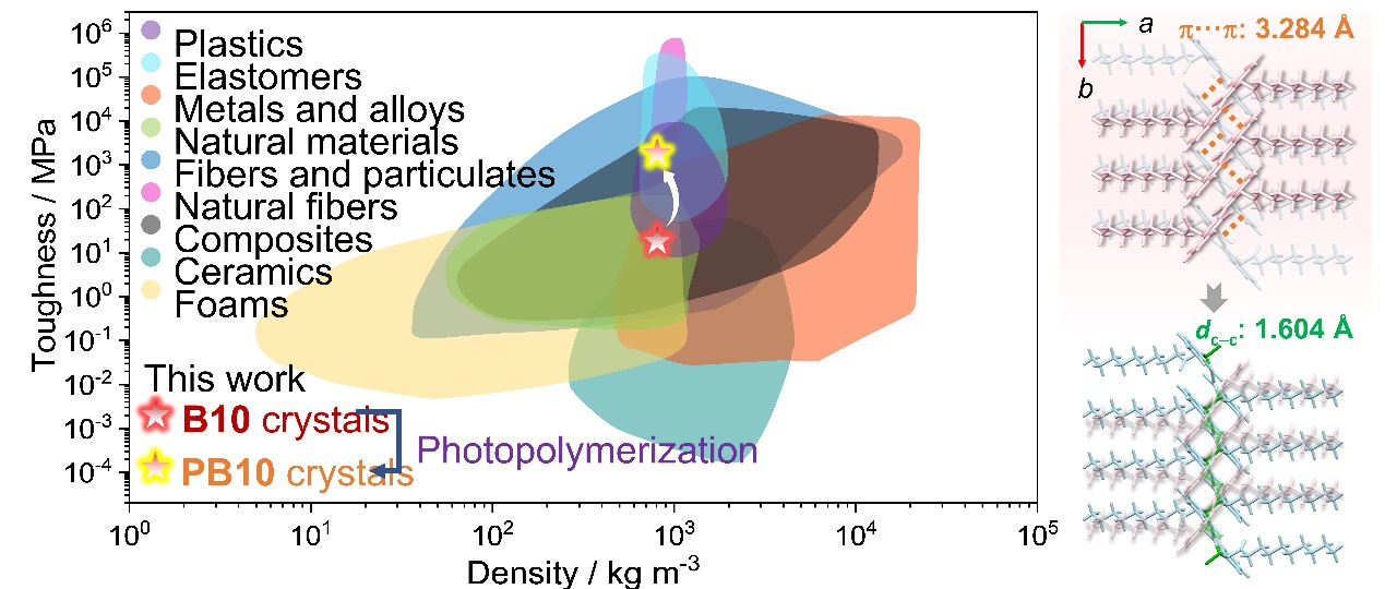图1.可见光诱导单晶至单晶聚合实现晶体材料机械韧性的显著增强